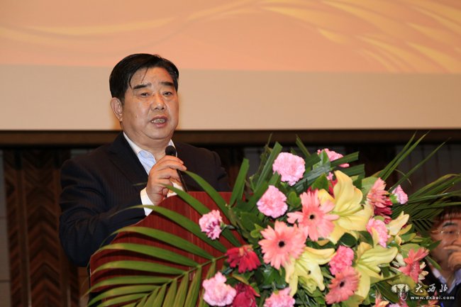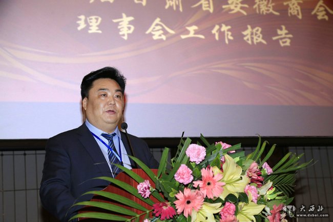 甘肃省安徽商会会长刘伟在换届会上讲话。 贾笑云 摄