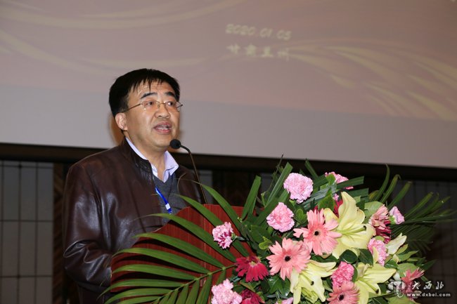 甘肃省安徽商会会长刘伟在2020新春联谊会上讲话。 贾笑云 摄